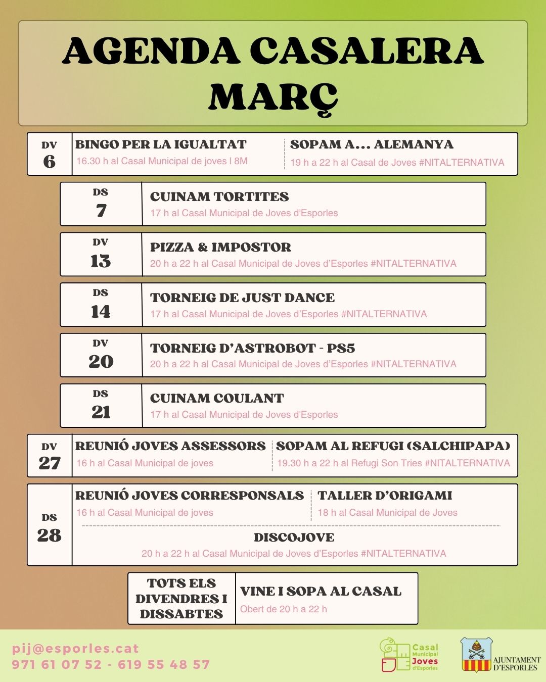 AGENDA CASALERA DE MARÇ