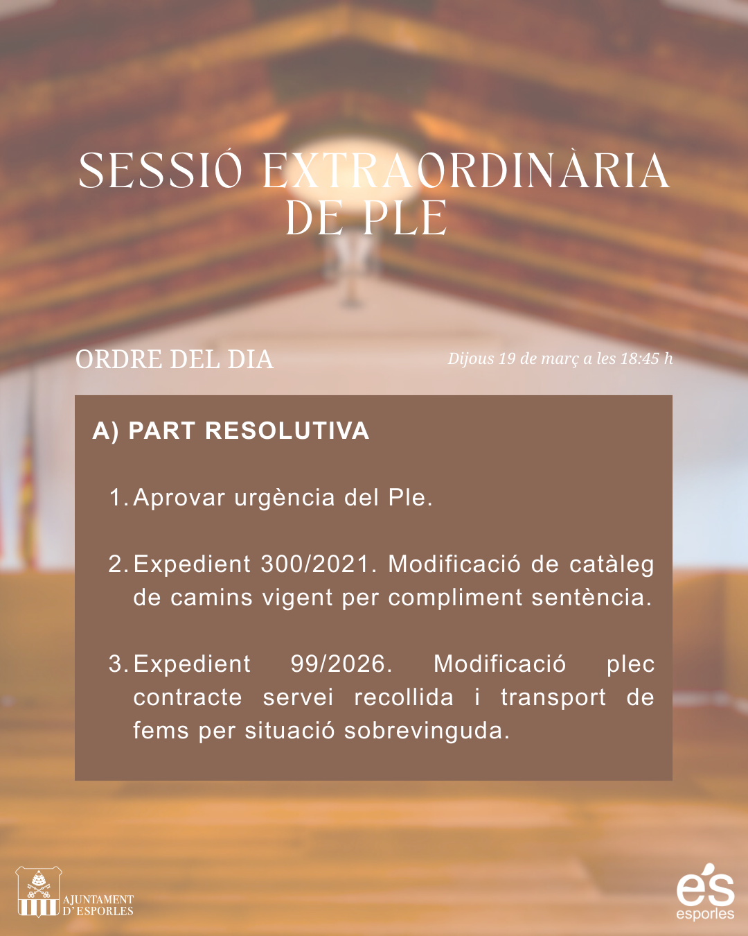 SESSIÓ EXTRAORDINÀRIA DE PLE