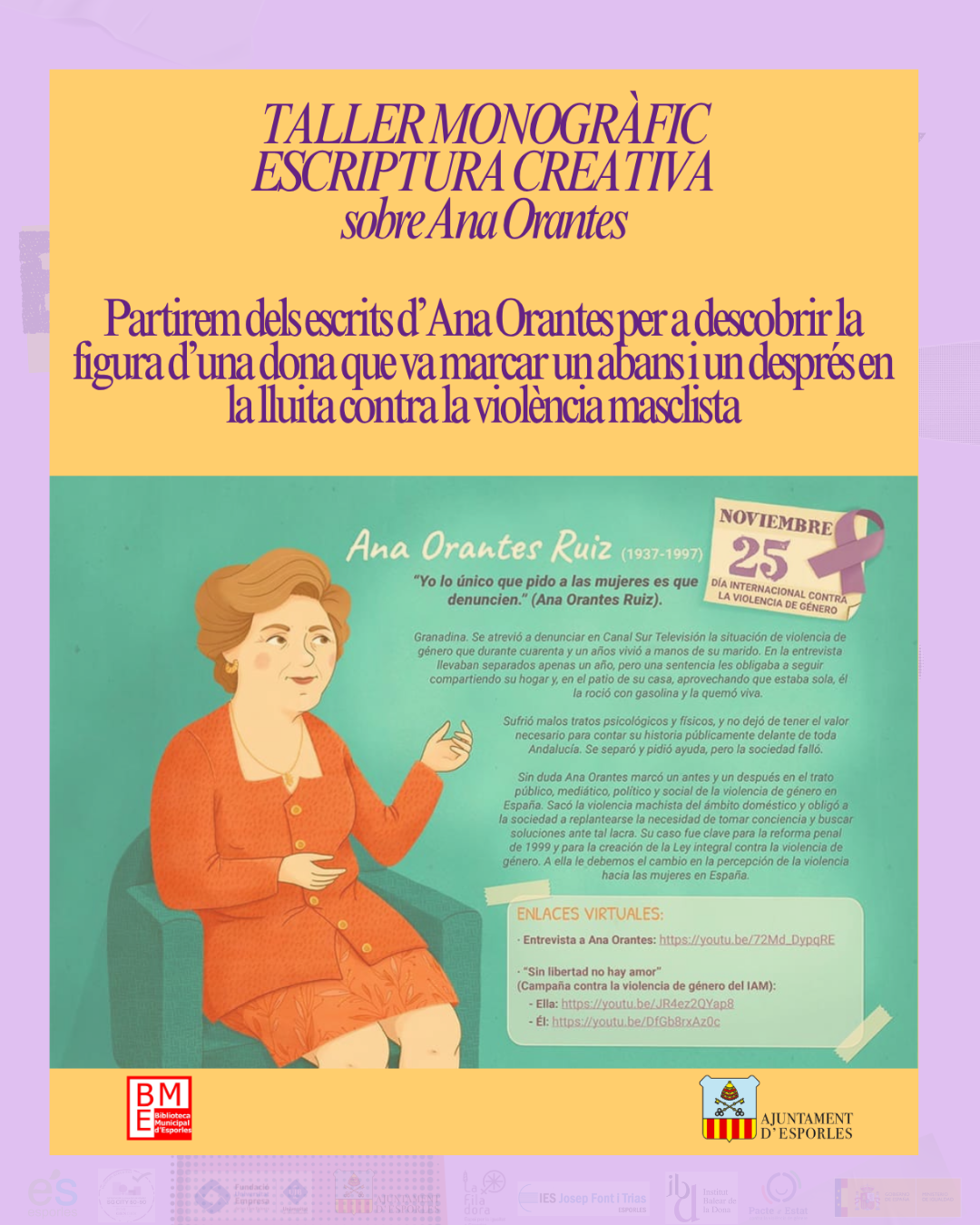 TALLER MONOGRÀFIC D'ESCRIPTURA CREATIVA SOBRE ANA ORANTES