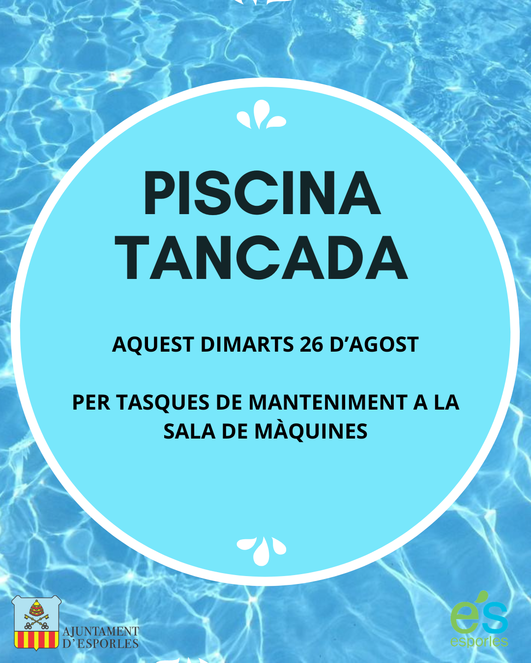 avui dimarts la piscina romandrà tancada fins a nou avís