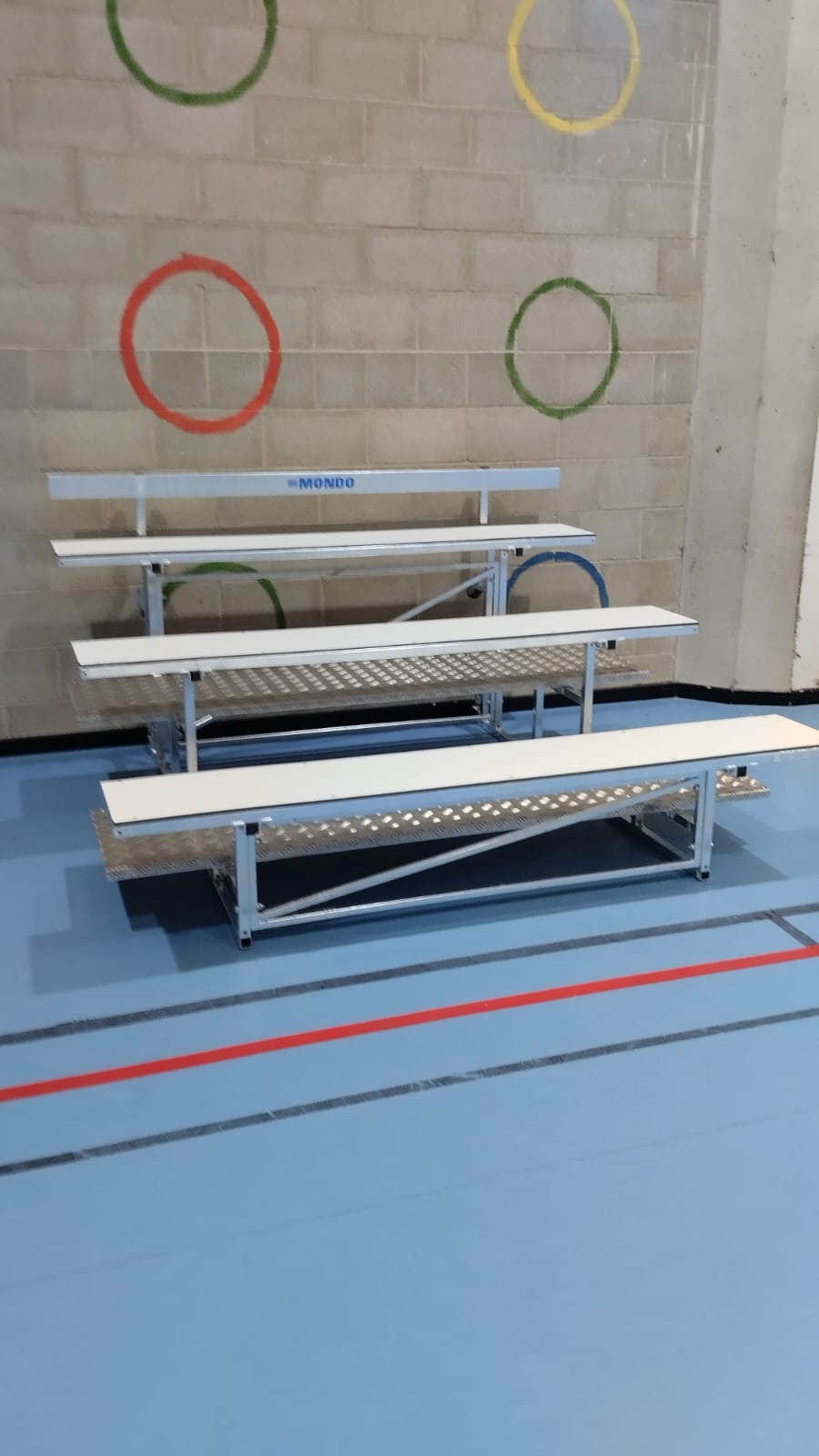 Les graderies, incorporades el passat mes de març, amb un cost de 9.921,82€ han estat completades ara amb cinc fundes protectores fabricades a mida amb lona ignífuga M2, per un import total de 4.259,20 €. Aquestes fundes compleixen la normativa europea UNE-EN 12503-4, que garanteix una òptima absorció d’impactes i aporta tranquil·litat en l’ús quotidià de l’espai.
