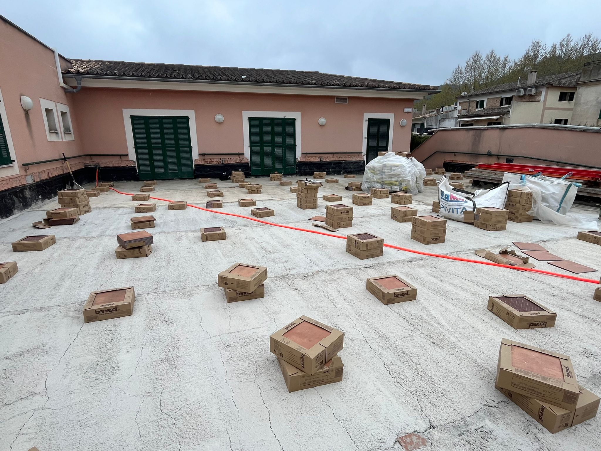 Actualment, els treballs se centren en l’enrajolat de la coberta plana transitable, una intervenció una intervenció que reforçarà la protecció contra filtracions i resistència de l’immoble.