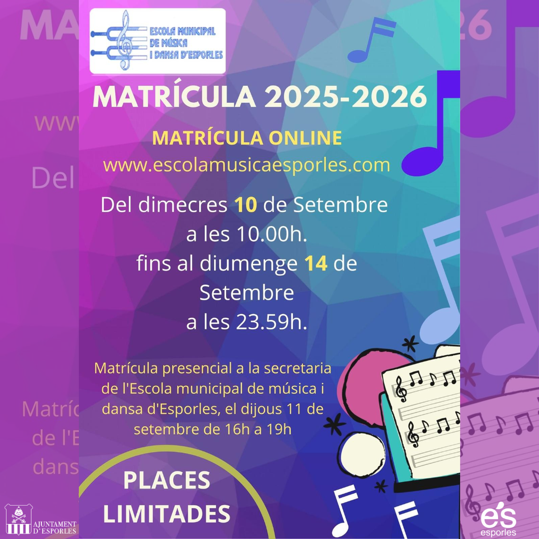 Matrícula ONLINE a www.escolamusicaesporles.com