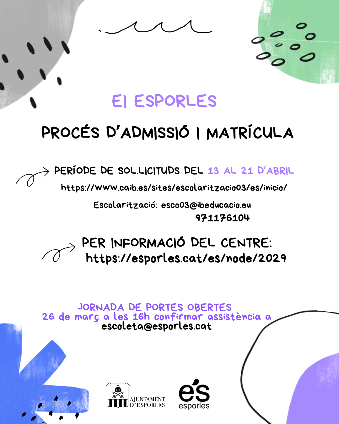 PROCÉS D'ADMISSIÓ I MATRÍCULA EI ESPORLES